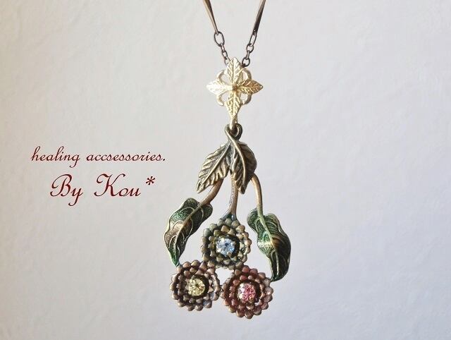 こちらはノスタルジックな雰囲気が漂う、ヴィンテージのダリアパーツでお作りしたネックレスになります。